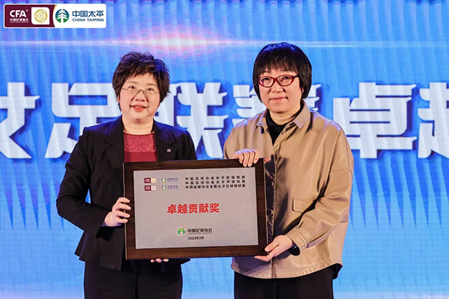 中国足协向中国太平授予“中国足协女足联赛卓越贡献奖”。