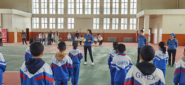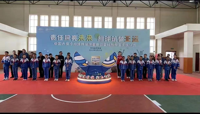 2021年,中国太保携手杭州亚组委成立“筑梦教练团”体育支教志愿团,让青海共和山区的孩子们亲身接触排球,感受排球的魅力。