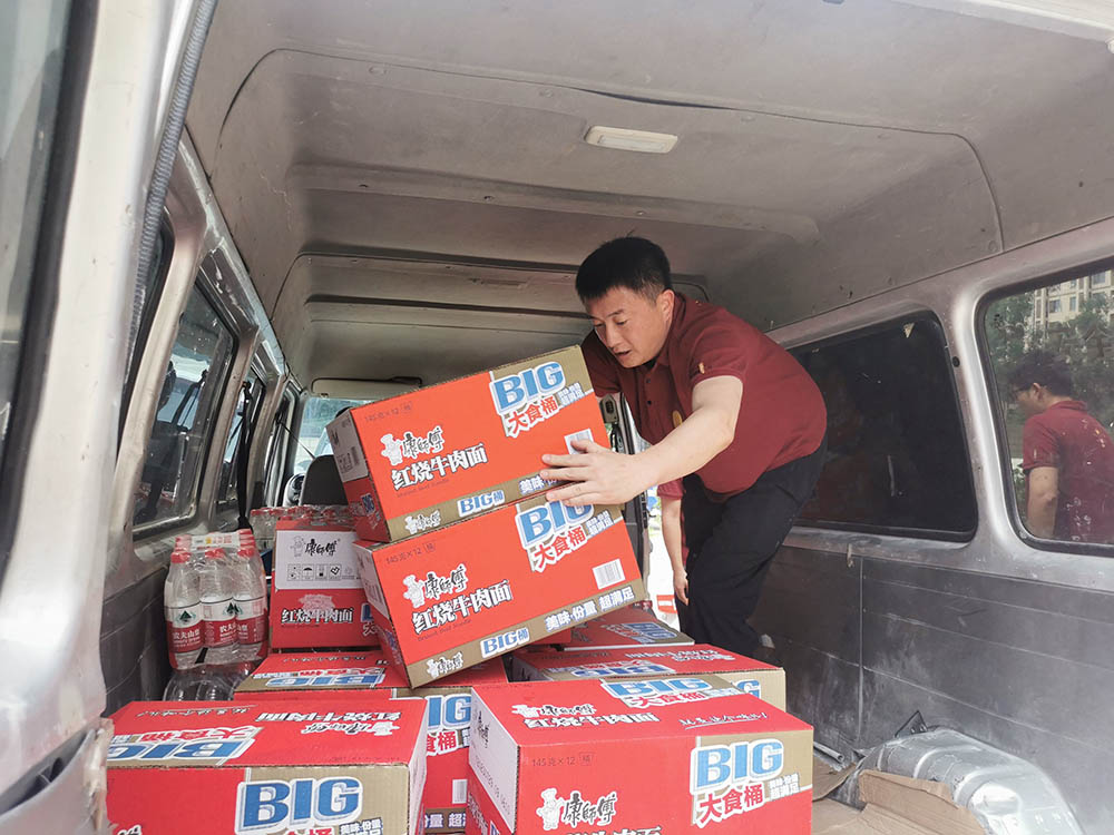 面对灾情,信泰保险北京分公司心系民生,第一时间组织成立临时应急救灾小组,于8月4日赶赴受灾较为严重的北京市房山区。抵达房山区民政局抗洪物资接收站点后,应急救灾小组向受灾群众捐赠方便面50箱、矿泉水100箱等生活必需品,有效缓解了受灾群众生活用品紧缺的困境,为受灾群众送上一份来自信泰人的关爱。