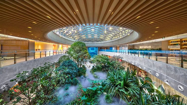 在生态环境打造上,泰康之家·燕园三期更是将创新做到了极致,社区专门打造了800平米的生态“绿肺”空间,种植99种植物,让长辈们在充满绿意、阳光以及自由曲线的室内空间舒心交往。“绿肺”对面还有一个高9米宽8米的超大水族箱,数十种珍稀的海洋鱼类在此畅游,打造出充满生命力和艺术感的海底世界。此外,为了积极响应国家“双碳”战略,燕园三期还将广泛使用太阳能光伏等环保设施,着力打造绿色低碳型养老社区。