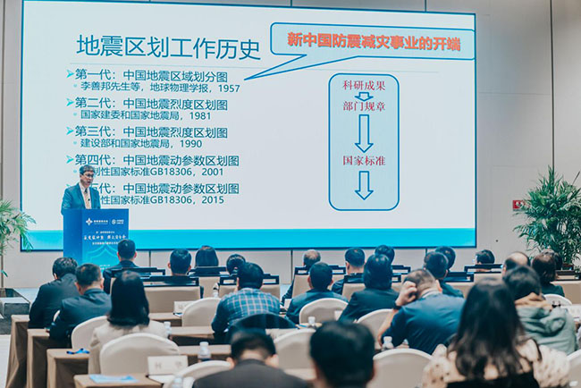全国政协委员、中国地震灾害防御中心副主任吴健作了题为《新一代全国地震动参数区划图编制及未来应用考虑》的主旨演讲,立足我国地震区划工作及发展历史,阐述了全国地震动参数区划图总体目标和工作要求,即“两个坚持、三个转变”:坚持以防为主、防抗救相结合,坚持常态减灾和非常态救灾相统一,识别风险、主动治理、减轻灾害后果。提出全新的地震事件预测库、全新的地震危险性分析算法、全新的场地条件分类及地震动调整模型作为未来在巨灾保险中的应用考虑。