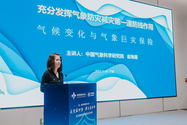 中国气象科学研究院二级研究员、气象风险与保险联合开放实验室主任赵艳霞在题为《气候变化与气象巨灾保险》的主旨演讲中,分析了当今全球气候变化事实和面临的风险状况,表示气候变化对中国农业的影响是利弊共存的,总体弊大于利。她提出,气象指数保险是保险的一种创新发展,应用前景广阔,基于保险标的物的气象灾害风险减量,能为保险工作提供“保险气象预警服务、重大气象灾害预评估、种植业保险气象评估”的气象服务。
