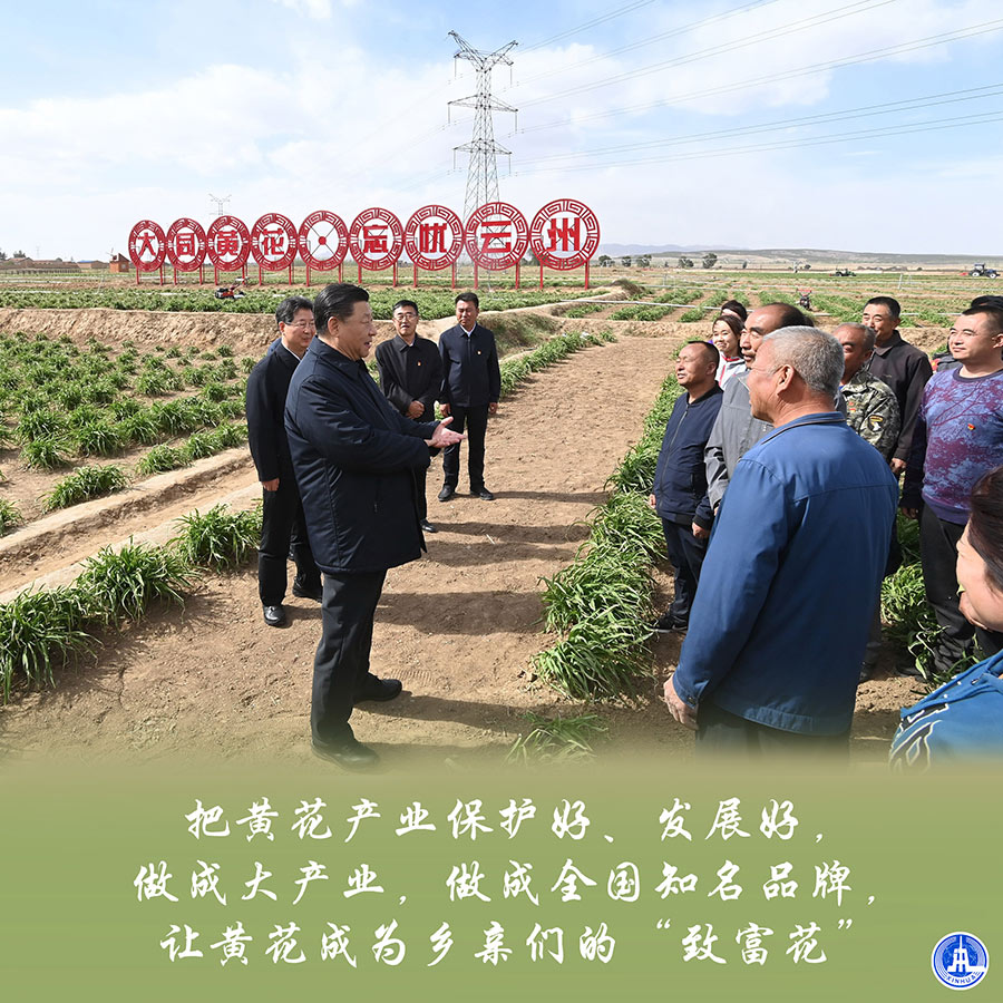 花儿为什么这样“黄”?——是因为有了党和政府的贴心服务,是因为有社会各界的鼎力支持,是因为黄花“双保险”为脱贫致富的“摇钱草”真正撑起了经济补偿的“保护伞”……更是因为在几年前的那个美丽的春天、在这片希望的田野上,总书记的殷殷嘱托:“把黄花产业保护好、发展好,做成大产业,做成全国知名品牌,让黄花成为乡亲们的‘致富花’!”