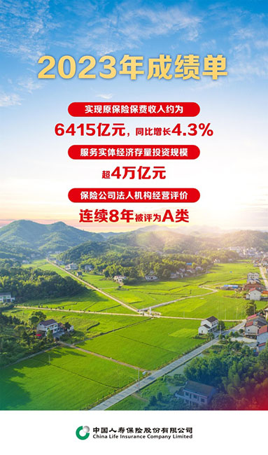 奋勇争先,在高平台上再创佳绩。2023年,公司实现原保险保费收入约为6415亿元,同比增长4.3%。自2015年开展保险公司法人机构经营评价以来连续8年被评为a类,信用评级结果保持国内最高水平;位列《福布斯》全球企业2000强榜单第62位、《财富》中国上市公司500强榜单第12位,荣获“2023高质量发展保险公司方舟奖”“中国传播创新大奖”等殊荣。