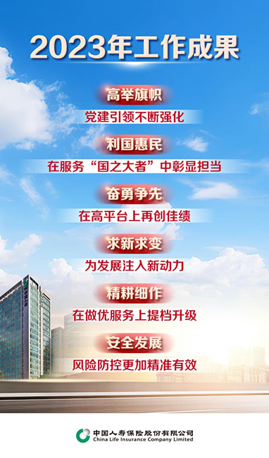 中国人寿寿险公司党委书记、总裁利明光作了题为《胸怀大局 应对变局 开创新局 全力推动公司高质量发展再上新台阶》的报告。会议指出,2023年是全面贯彻党的二十大精神开局之年,是新冠疫情防控转段后经济恢复发展的一年,外部环境复杂性、严峻性、不确定性上升。全体国寿人坚持以习近平新时代中国特色社会主义思想为指导,沉稳应对、砥砺奋进、创新突破,以实绩实效贯彻落实党的二十大精神,在公司历史上写下了浓墨重彩的一笔。