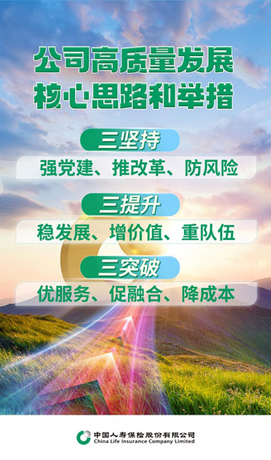 会议提出,在着力推进公司高质量发展的征程上,系统上下要坚持守正创新,保持“稳增长、重价值、优结构、强队伍、推改革、防风险”的战略定力,并结合中央要求、集团部署、公司高质量发展的难点,强化服务、融合、降本,构建“三坚持”“三提升”“三突破”的高质量发展核心思路和举措。“三坚持”即在“强党建、推改革、防风险”三大方向长期坚持,毫不动摇。“三提升”即在“稳发展、增价值、重队伍”三大方面不断改善,持续提升。“三突破”即在“优服务、促融合、降成本”三大领域集中力量,攻坚突破。“三坚持”“三提升”“三突破”三者相辅相成,有机统一。“三坚持”是推进高质量发展中长期坚持的基本原则和重要经验,“三提升”是推进高质量发展的成果成效,“三突破”是当前推进高质量发展重点突破的关键领域。