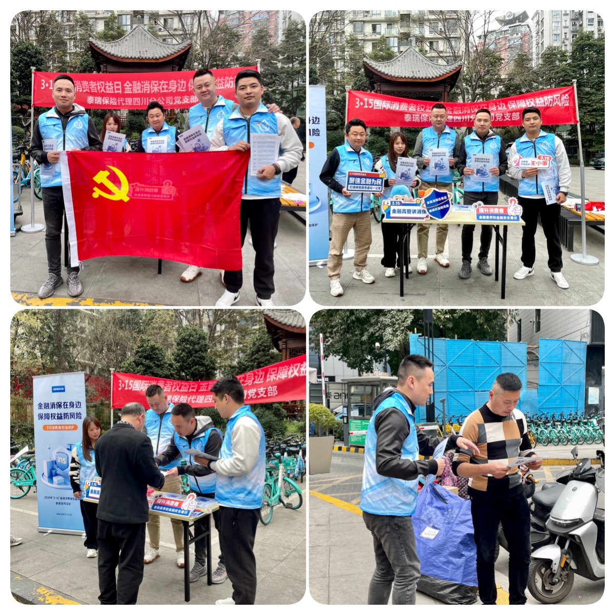 同期,泰瑞保险代理四川分公司党支部组织党员化身“宣讲志愿者”,开展“3·15”宣传教育活动,党员们结合自己所掌握的金融知识,帮助周围居民对金融消费者八项基本权利建立深刻理解。