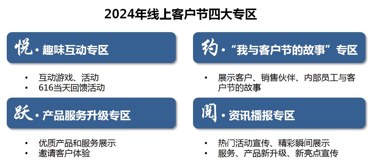 “我与客户节的故事”。面向客户、销售伙伴、内部员工征集故事,旨在发现、记录和传播历届“国寿616”客户节公司与客户度过的美好时光。故事包含但不限于客户节期间客户参与活动的互动体验、客户对客户节的未来期许、公司服务客户的温暖事迹、为客户解决“急难愁盼”问题的瞬间等。