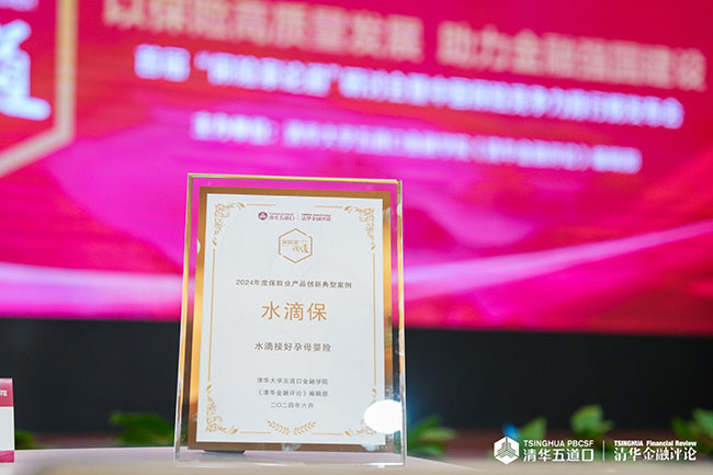 6月6日,由清华大学五道口金融学院《清华金融评论》主办的首届“保险家论道”研讨会在北京召开,会议主题为“以保险高质量发展,助力金融强国建设”,邀请多位监管领导、行业专家、保险企业负责人,共同探讨保险行业创新与转型思路。会议同步发布“2024中国保险业创新发展典型案例”评选结果,经专家评委综合评定,水滴保接好孕母婴险荣获“2024年度保险业产品创新典型案例”奖。