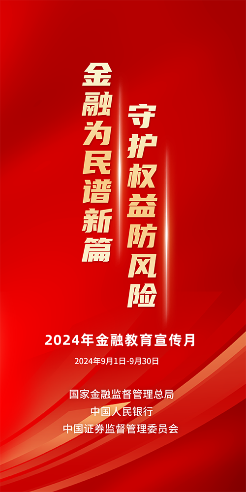 国家金融监督管理总局、中国人民银行、中国证监会联合开展的“金融教育宣传月”活动正式拉开帷幕。2024年活动口号定为“金融为民谱新篇 守护权益防风险”。活动时间为2024年9月1日至9月30日。