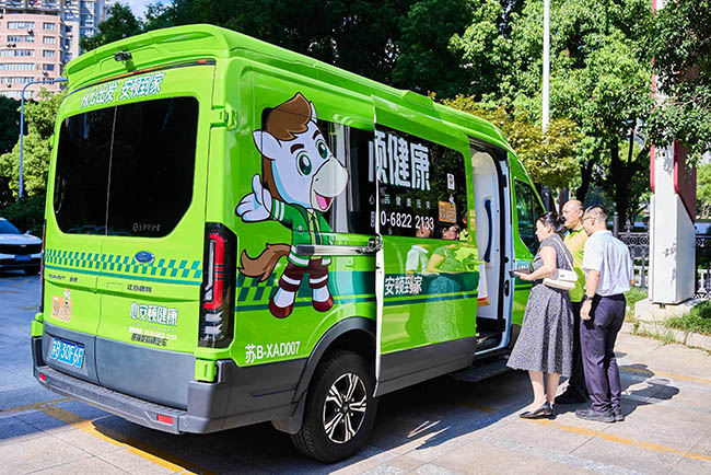 开放日现场,沉浸式体验区成为焦点。养老服务体验区通过老龄生活模拟实验室,真实还原高龄群体的日常场景,智能养老机器人、适老化设计等细节,让“适老化”服务触手可及;健康服务体验区则通过非急救转运车辆的“实战演练”,全流程展示应急服务的专业与高效,消除客户疑虑。