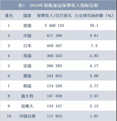 从2019年寿险保费收入看,美国寿险保费收入占全球市场份额超过21%,日本占全球市场份额比我国多一点,约为11.7%,我国为11.3%。