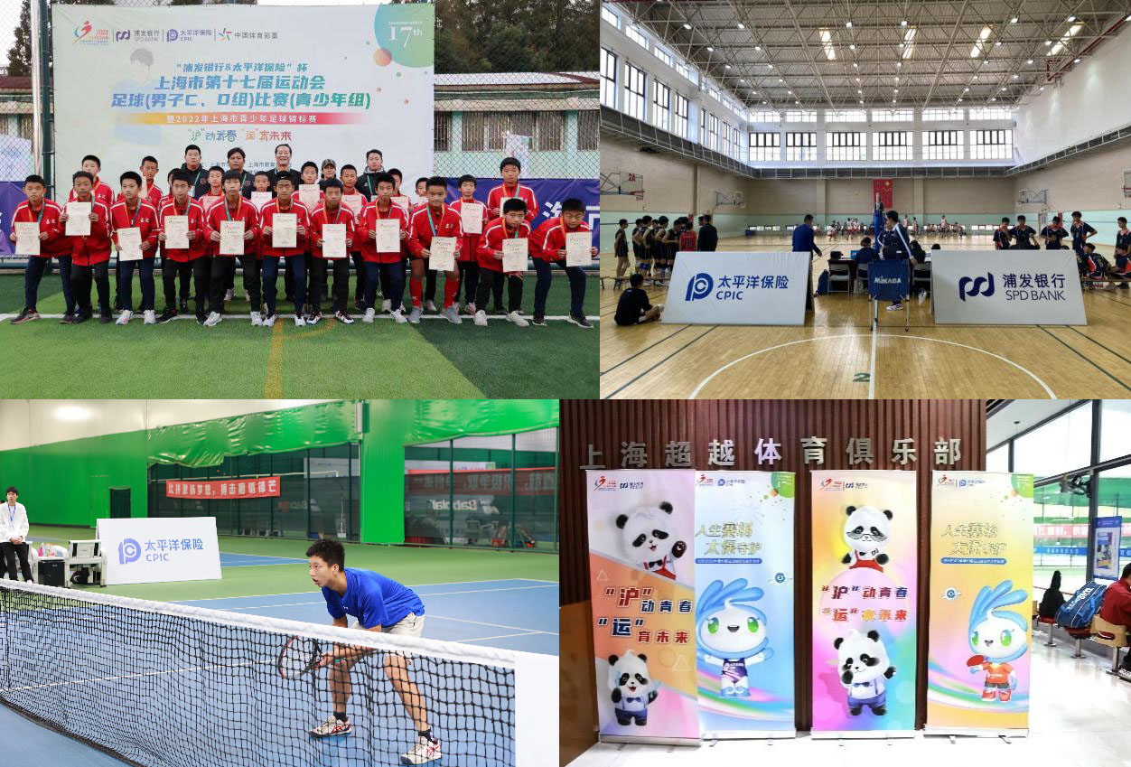 浦发银行、中国太保联合冠名支持上海市第十七届运动会,是双方全面融合合作的一次创新探索,为市运会提供全面的银行、保险服务。中国太保发挥保险专业优势,全力护航市运会成功举办,为参加市运会的运动员、工作人员等提供意外伤害、意外医疗等保障,为赛事运动场馆提供风险查勘及评估服务。中国太保还充分发挥健康管理优势,通过新成立的青少年健康促进中心为已陆续开展的赛事提供专业急救培训、应急救援等服务,助力市运会成为一届弘扬体育精神、展现青春风采、彰显健康活力的青少年体育盛会。