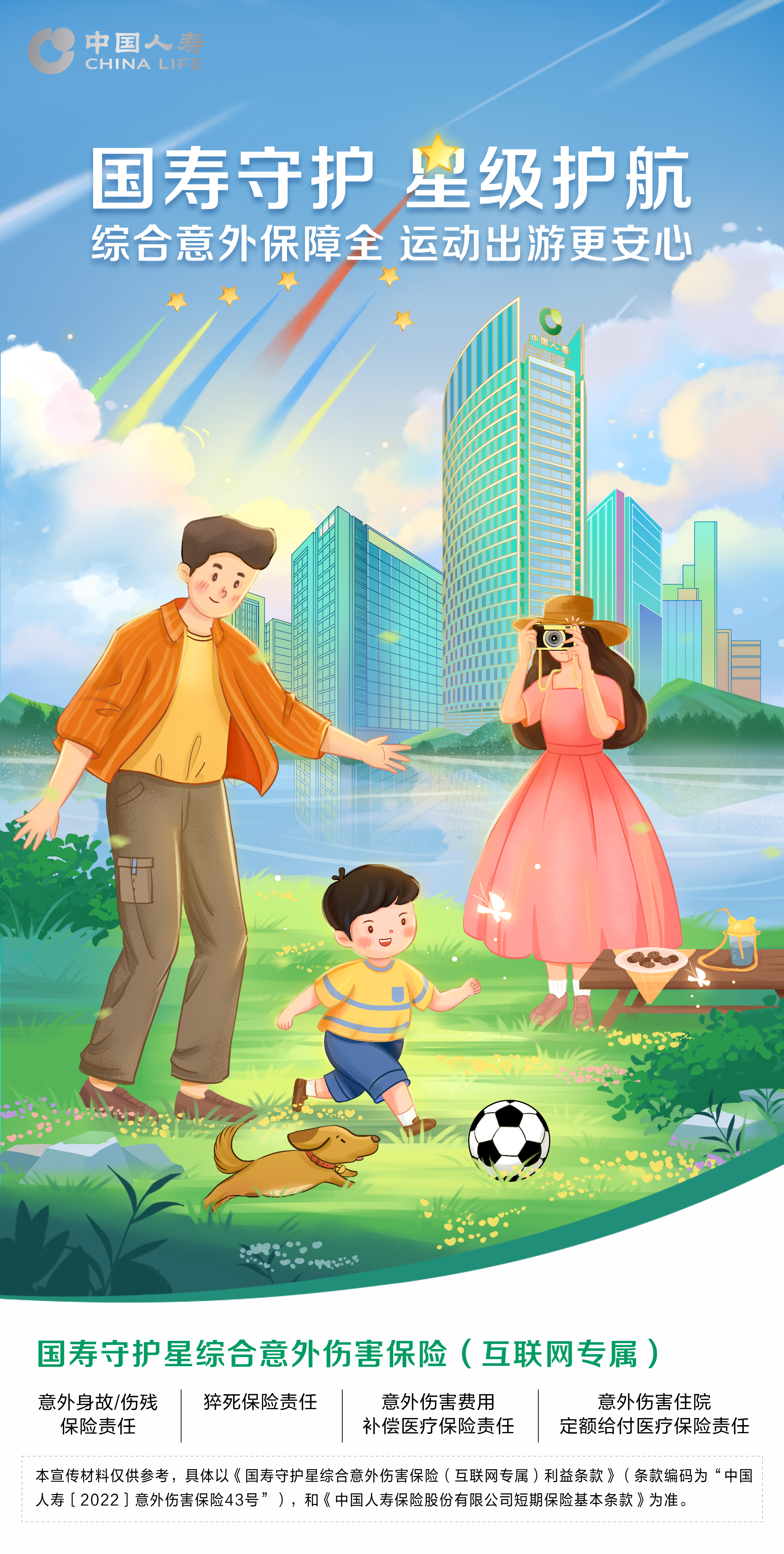 积极响应社会大众日益增长的意外伤害保障需求,中国人寿保险股份有限公司(以下简称“中国人寿寿险公司”)持续加强多元化产品研发,不断升级迭代意外伤害保险产品,于近期推出了国寿守护星综合意外伤害保险(互联网专属)产品。