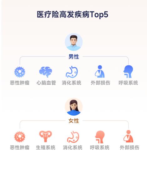 值得关注的是,水滴保2022理赔服务年报显示,男性和女性申请医疗险理赔的高发疾病top1均为“恶性肿瘤”。男性另外的高发疾病依次为——心脑血管、消化系统、外部损伤、呼吸系统类疾病。而女性另外的高发疾病依次为——生殖系统、消化系统、呼吸系统、外部损伤类疾病。