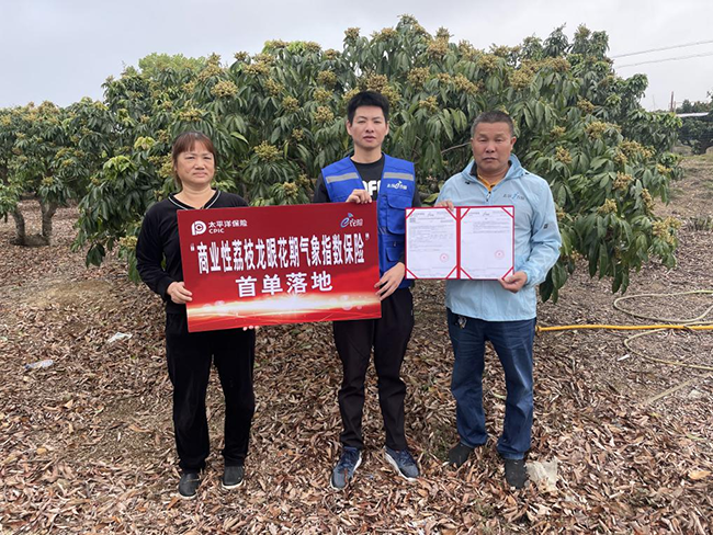 中国太保产险创新性地推出了荔枝龙眼花期气象指数保险并成功落地,为荔枝龙眼种植户保驾护航:当日降水量≥30mm时,或者低温连续2天及以上的日平均气温≤16℃,便可触发理赔,每亩最高可赔付3000元。