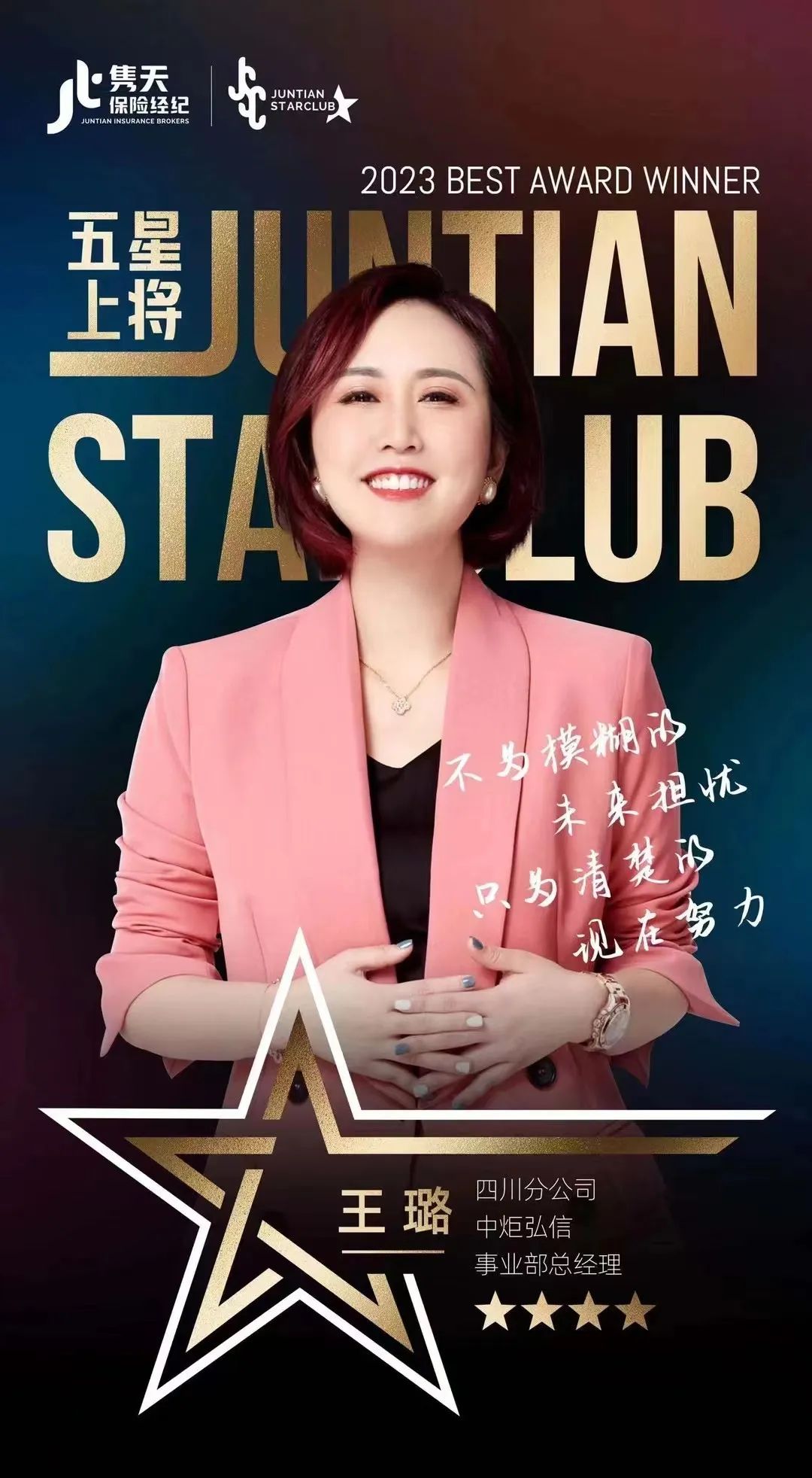 截至目前,王璐个人累计为500多个家庭客户提供了超过15亿元的保障额度。加入隽天后,她连续多次荣登隽天和中炬系统年度个人保费榜,还时常爆出百万和千万大单,2023年,王璐第五次蝉联jsc隽星会员,成为隽天首批“五星上将”。