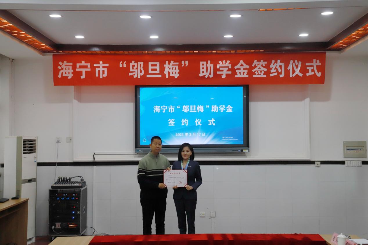 5年前,邬旦梅开始着手设立个人慈善助学会。一次偶然的机会,她得知海宁市教育发展投资有限公司有一个支持海宁市新居民子女学校教育事业发展的项目,恰好和她的想法相契,于是立马动身前往。通过一次次的沟通协商,终于在2021年以个人名义设立了百万爱心助学金,帮助海宁博远学校、博达学校的新居民孩子解决读书之困。