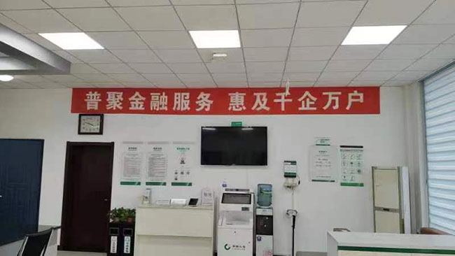 中国人寿寿险江苏省分公司营业网点led屏滚动播放“普惠金融推进月”宣传口号
