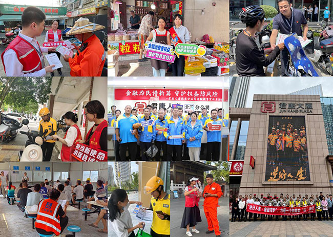 君康人寿总公司走进大厦商圈开展金融知识宣传活动,宣传内容涵盖“保险基础知识和保险保障功能”“个人金融信息保护”“防范电信网络诈骗”“防范非法集资”等。宣传活动得到公司领导的高度重视与积极参与,也受到了来往客户与公众的广泛好评。
