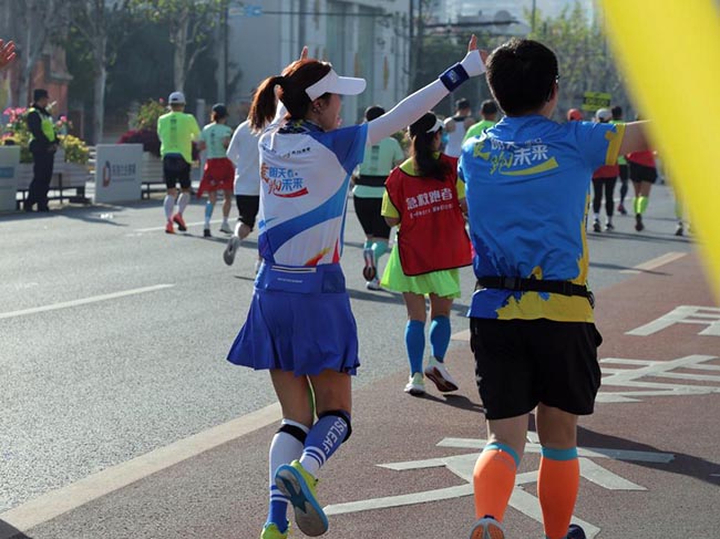 在5km和11km的两个鼓动站,此起彼伏的加油口号和富有动感的节奏旋律,如一首首激昂的战歌响彻赛道,点燃了城市中热烈的氛围,更是跑者们源源不断的“精神”补给。而分布在比赛后半程的5个加油小分队,更是用一抹充满活力的“太保蓝”,一次次鼓励跑者们突破极限,向终点发起挑战。