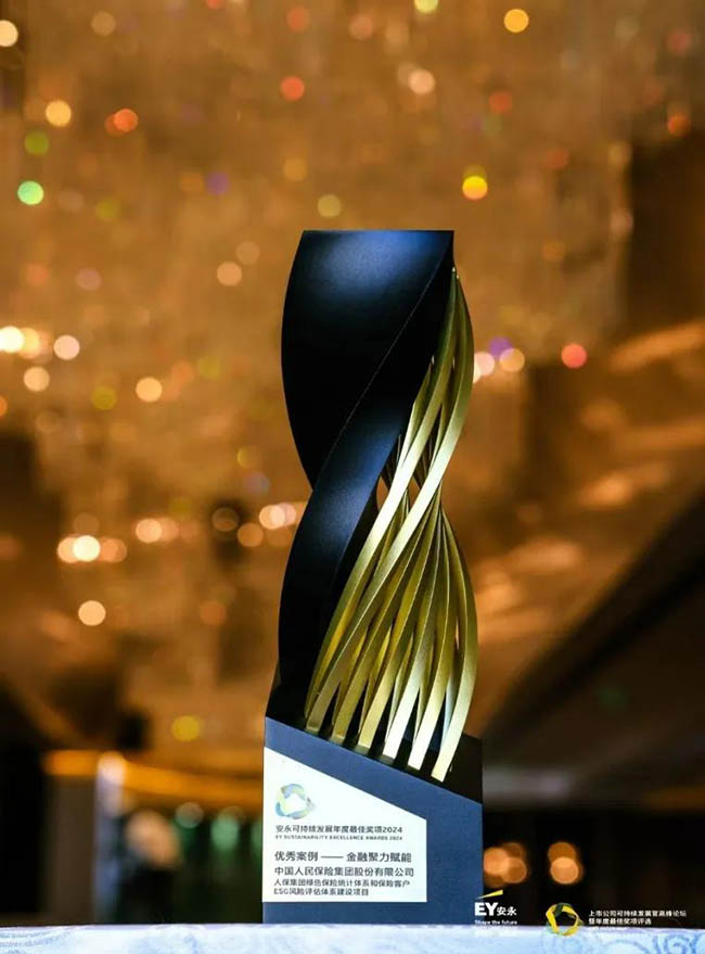 近日,由安永举办的第三届上市公司可持续发展年度最佳奖项评选结果揭晓,中国人保“集团统一的绿色保险统计体系和保险客户esg风险评估体系”项目凭借其创新性及实用性,荣获“优秀案例奖”,是保险业唯一获奖单位。该奖项是参考全球最新的可持续发展评估体系,综合考虑商业、社会和技术价值,通过严谨的评选流程,全面准确衡量参选企业的可持续发展能力和成效,最终由清华大学、香港理工大学、北京绿色交易所等权威机构的知名专家组成的独立评委会评选得出。