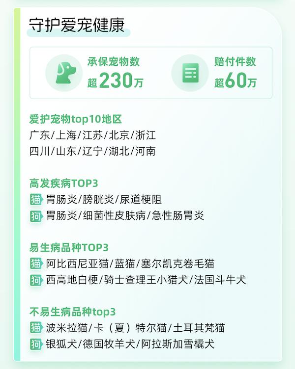 在宠物险领域,众安宠物险理赔已从0到1实现全链路自动化,通过ocr识别、ai、自研算法提升材料识别准确率,理算金额准确率超96%,月均自动结案数万件,为宠物行业数据标准奠定基础。2024年,众安的宠物险共承保宠物超230万只,赔付件数超60万件。
