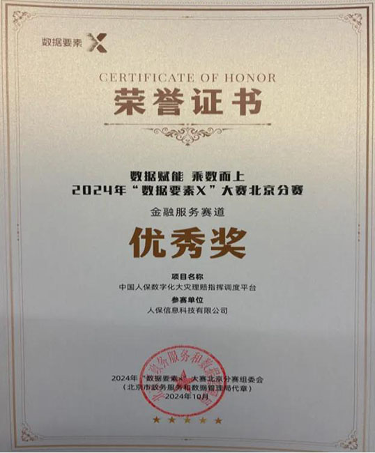近期,由国家数据局等有关部委举办的2024年“数据要素×”大赛比赛结果揭晓。中国人保“集团大灾理赔指挥调度系统平台”在来自政产研学用等领域的729件参评作品中脱颖而出,荣获北京分赛“金融服务赛道”优秀奖,是唯一获奖的由保险集团总部牵头建设的项目。此次荣誉的获得,是中国人保集团落实“数字金融大文章”的一次有益探索和生动实践。