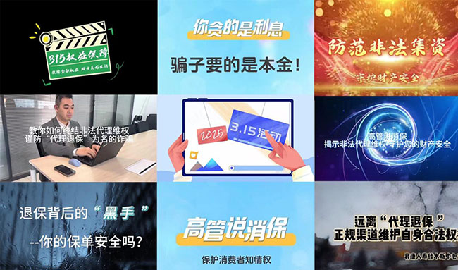 君康人寿总分公司制作“代理退保”“八项权益”等原创视频及海报图册,推出“寻消保答人”答题活动等,以轻松趣味的宣传形式,让保险知识深入人心。