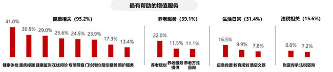 调研显示,95.2%的消费者关注健康相关增值服务,其中41.0%的消费者首选健康体检服务。此外,特需门诊预约、海外就医协调等特色服务也越来越受到家庭欢迎。