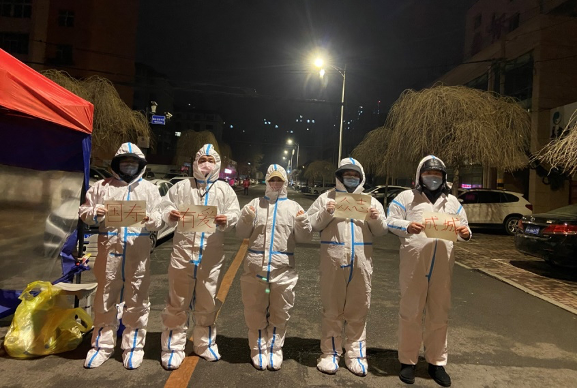 在城市按下“暂停键”的时候,他们为了人民的安全,心甘情愿地给自己按下了“快进键”。志愿者闫石家中两个孩子,小的才11个月,媳妇一个人在家里带着2个孩子手忙脚乱,闫石仍坚守阵地,站在一线;志愿者张婷婷连续多日参与抗疫,由于检测地点限制,一直站在风口工作,又遇上气温骤降,持续下雪,自己身患感冒,但仍快马加鞭未下鞍;志愿者马超家中孩子患荨麻疹,为支持丈夫抗疫工作,妻子独自一人带生病的孩子去医院治疗……